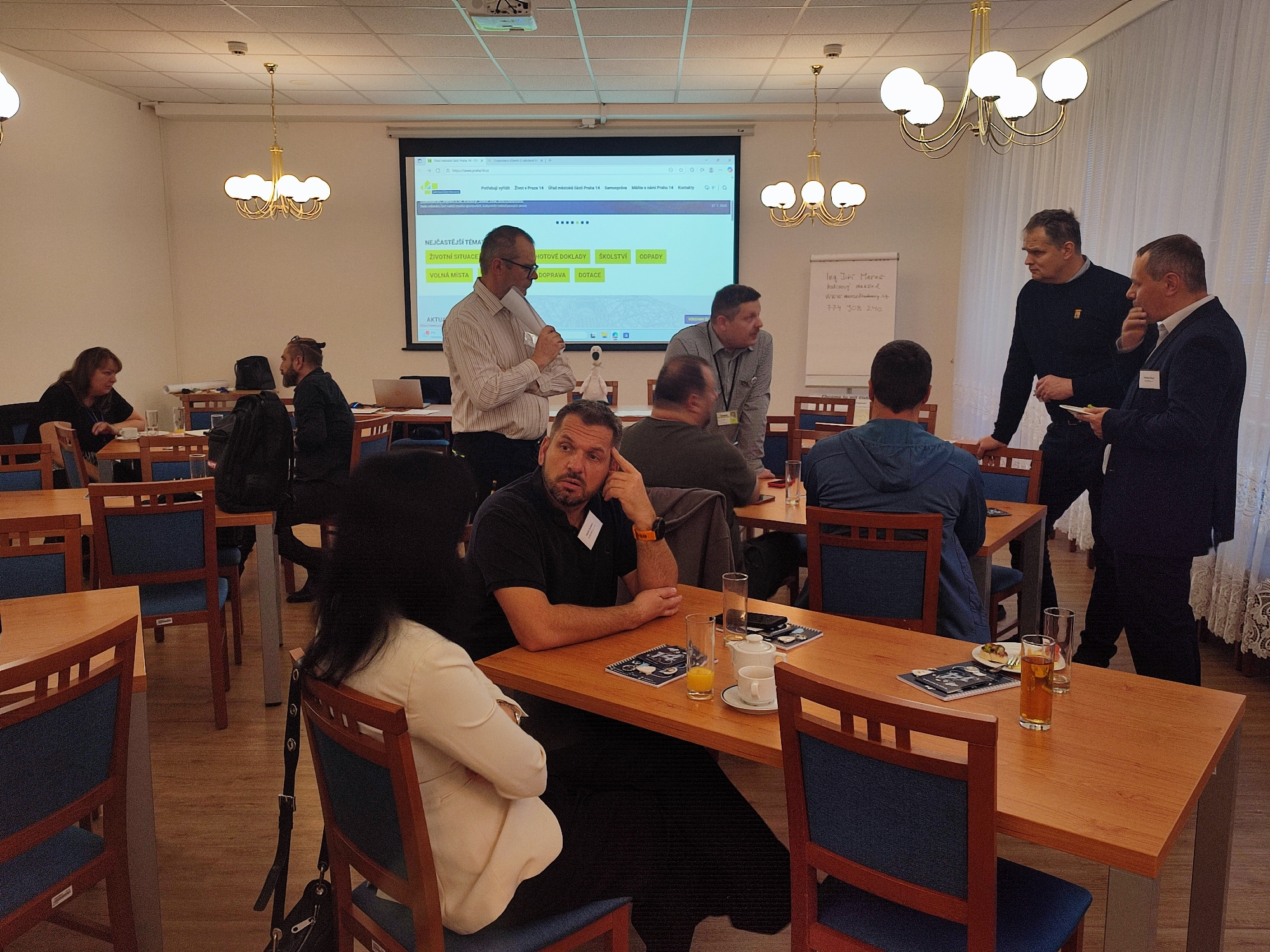 Na snídani dorazilo téměř dvacet zástupců firem i živnostníků z různých oborů. Účastníky přivítal radní Ing. Jan Liška, který představil strategii udržitelného rozvoje a koncepční dokumenty k podpoře podnikání. V programu zazněly informace o připravovaném akčním plánu, možnostech spolupráce a projektech, jako je participativní rozpočet či Corrency. Podnikatelé se také seznámili s centrálním zdrojem informací na webu MČ Praha 14.