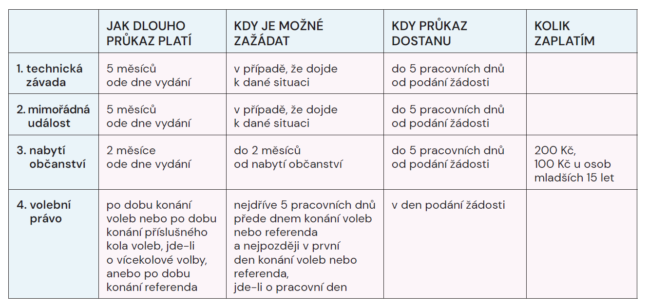 • dočasný občanský průkaz