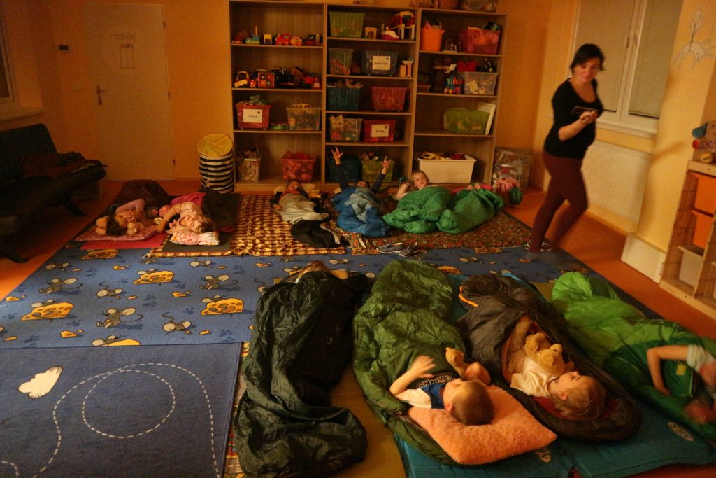 S sebou dětem zabalte: Pyžamko, bačkorky, polštářek, spacák, karimatku (pokud máte), plyšáka na spaní, láhev na pití, kartáček a pastu na zuby.